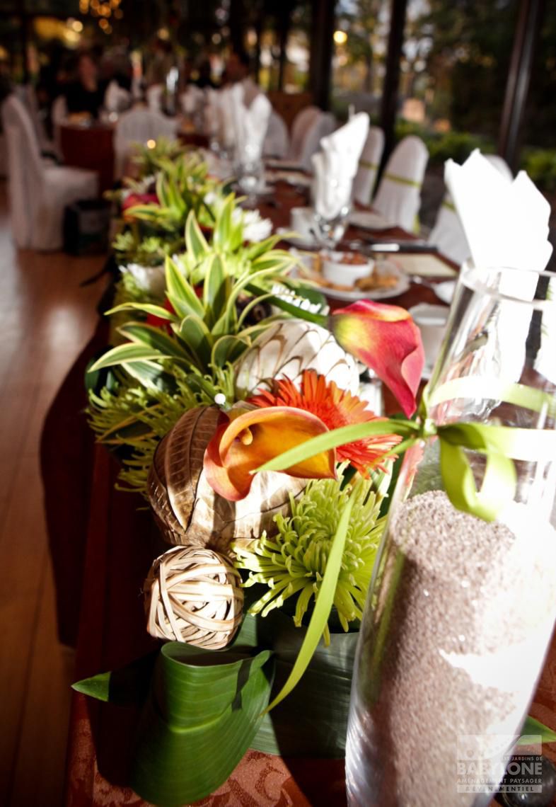 La création de décors s’exprime par la mise en œuvre du bouquet de la mariée et de ses boutonnières, de centre de tables et d’ornements pour vos galas, des faire-part pour convier vos invités, de l’élaboration de thématiques pour vos soupers-bénéfice ou même par la construction de mobilier.